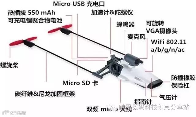 别看它小,它可是自带了摄像头、指南针、麦克风和WiFi等各种组件。