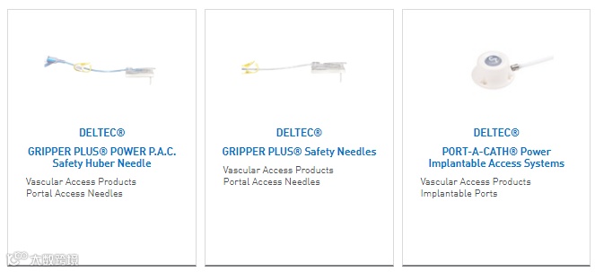 Deltec®品牌系列的产品,主要应用于成人危重病护理、家庭护理、新生儿和小儿危重病护理、肿瘤学、疼痛管理等领域。产品包括血管通路解决方案,包括静脉导管、可植入式端口,专用针头,导管等。