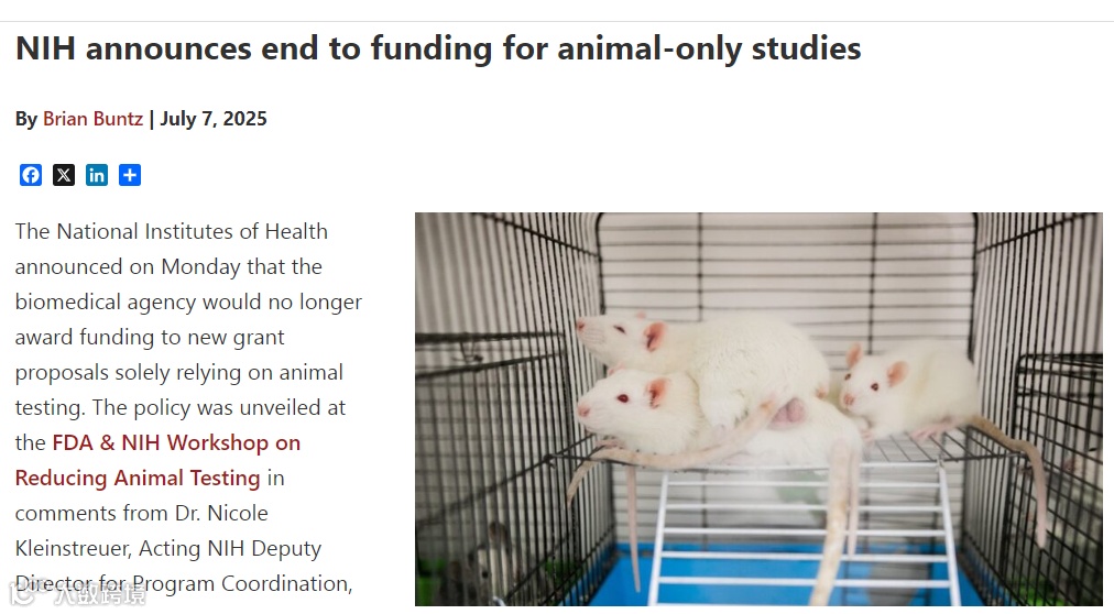 2023年9月,美国国立卫生研究院(NIH)发布了一项具有里程碑意义的政策声明:自2025年起,将逐步停止资助仅依赖动物实验的研究项目,并要求新申请的研究方案必须整合人类相关替代方法(如类器官、器官芯片、计算建模等)。这一决定标志着现代生物医学研究方法的重大转变,旨在推动更具临床转化价值的研究,同时减少对传统动物模型的依赖。