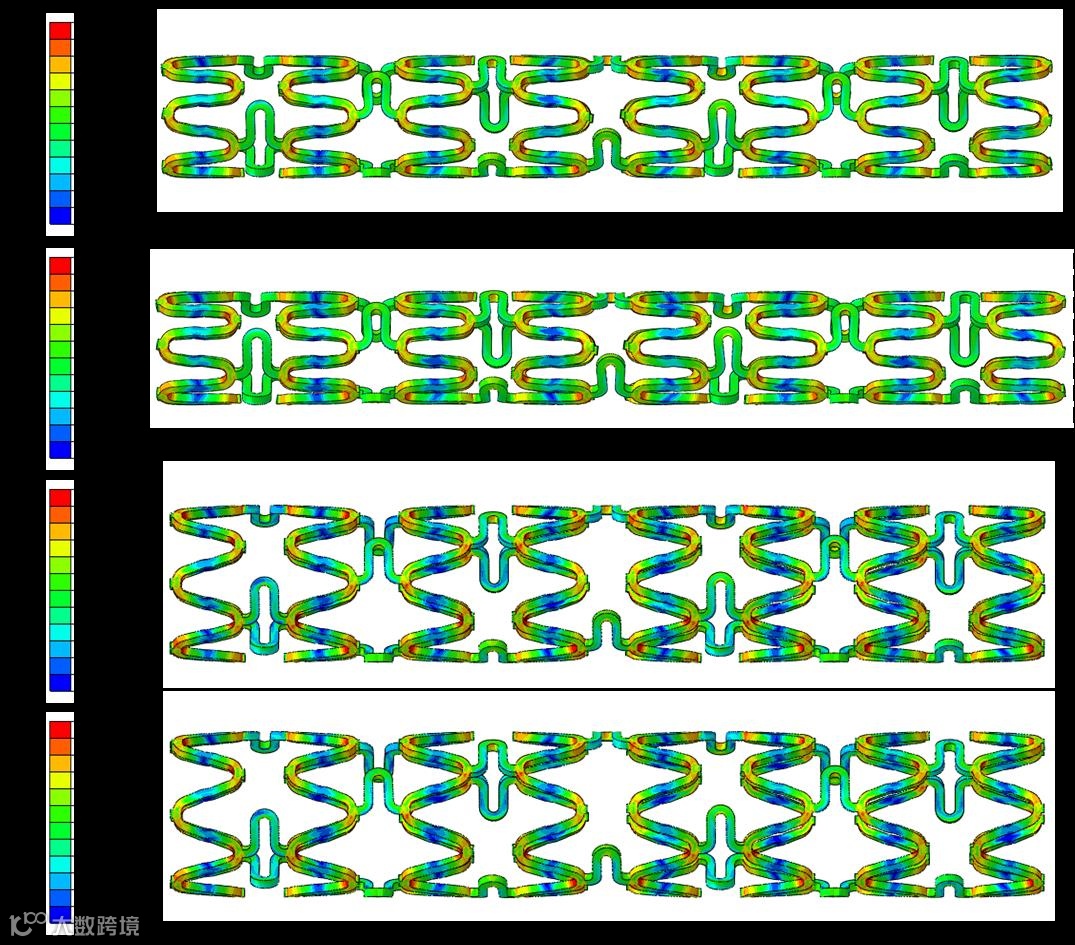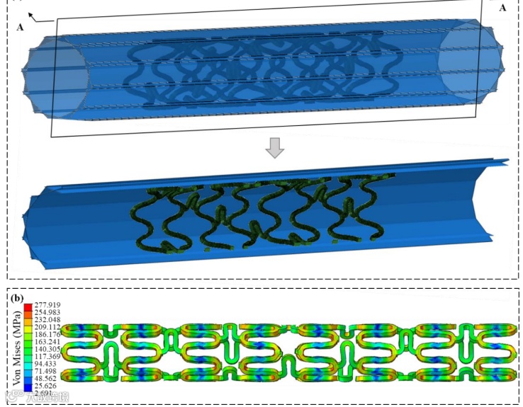 3. 柔顺性分析:弯曲刚度 4.31 N·mm²优于商用Absorb GT 1聚合物支架(4.20 N·mm²),相较于某些美国专利结构,柔顺性提升9.76倍,更利于在复杂血管中输送,建议弯曲角度不超过10°,以避免塑性变形影响性能。