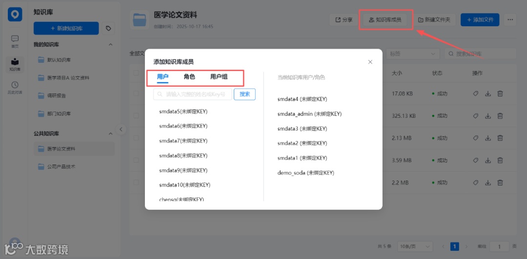 公共知识库:由管理员统一管理,支持灵活设置查看使用权限。