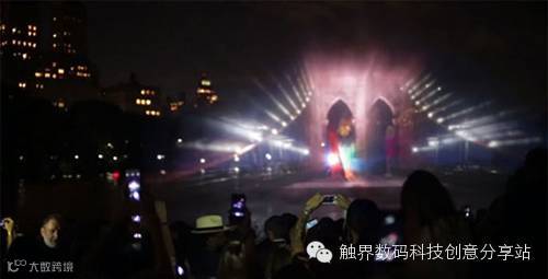 这次项目由视觉特效公司MPC负责,模拟纽约街头的影像及事先制作的模特展示,通过4D全息投影在曼哈顿中央公园湖面60英尺高的水幕上,展现时装、艺术与科技的结合。