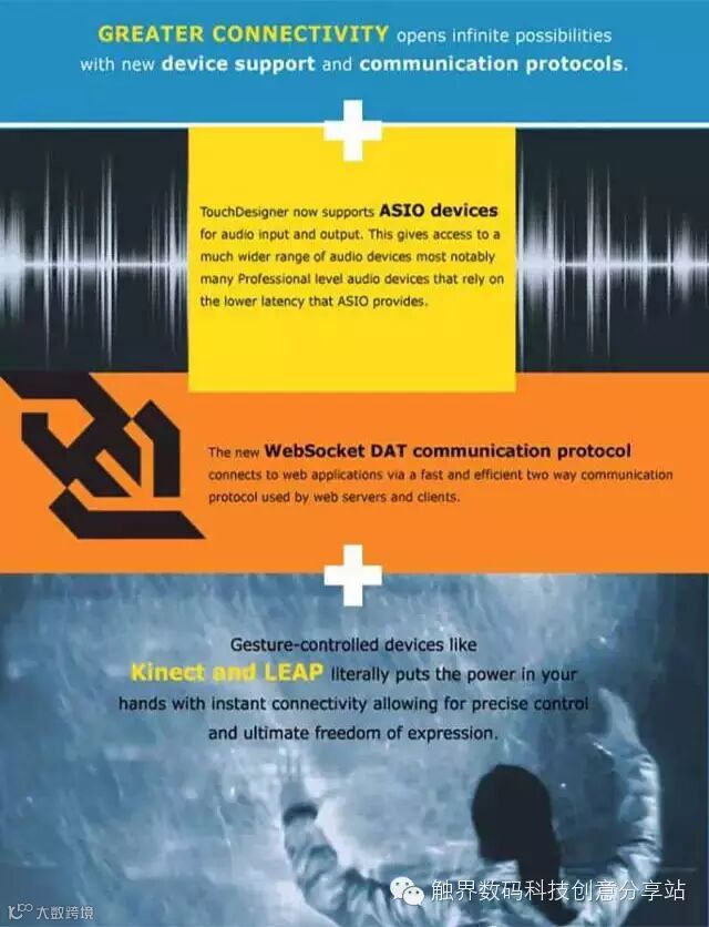 TouchDesigner是基于节点的可视化编程语言,提供GPU加速引擎,并支持4K多通道输出。