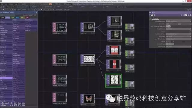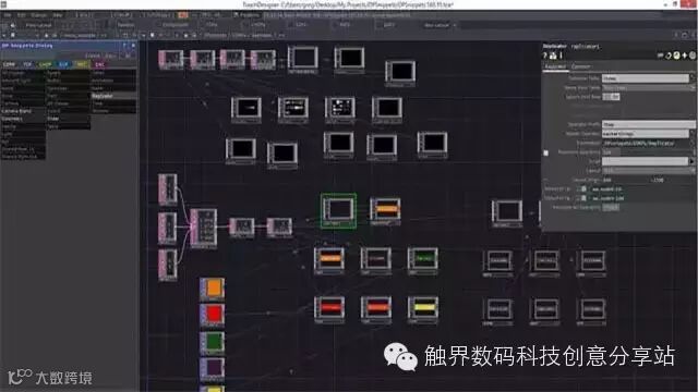 TouchDesigner是一款可视化交互设计开发平台,提供最完整的3D Mapping,视觉设计,数据可视化,多媒体交互等原型设计和用户界面的可视化编辑工具。