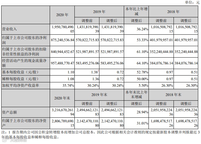 2020年,健帆生物营业收入为195078.05 万元,同比增加36.24%;净利润为87524.05万元,同比增长53.33%。