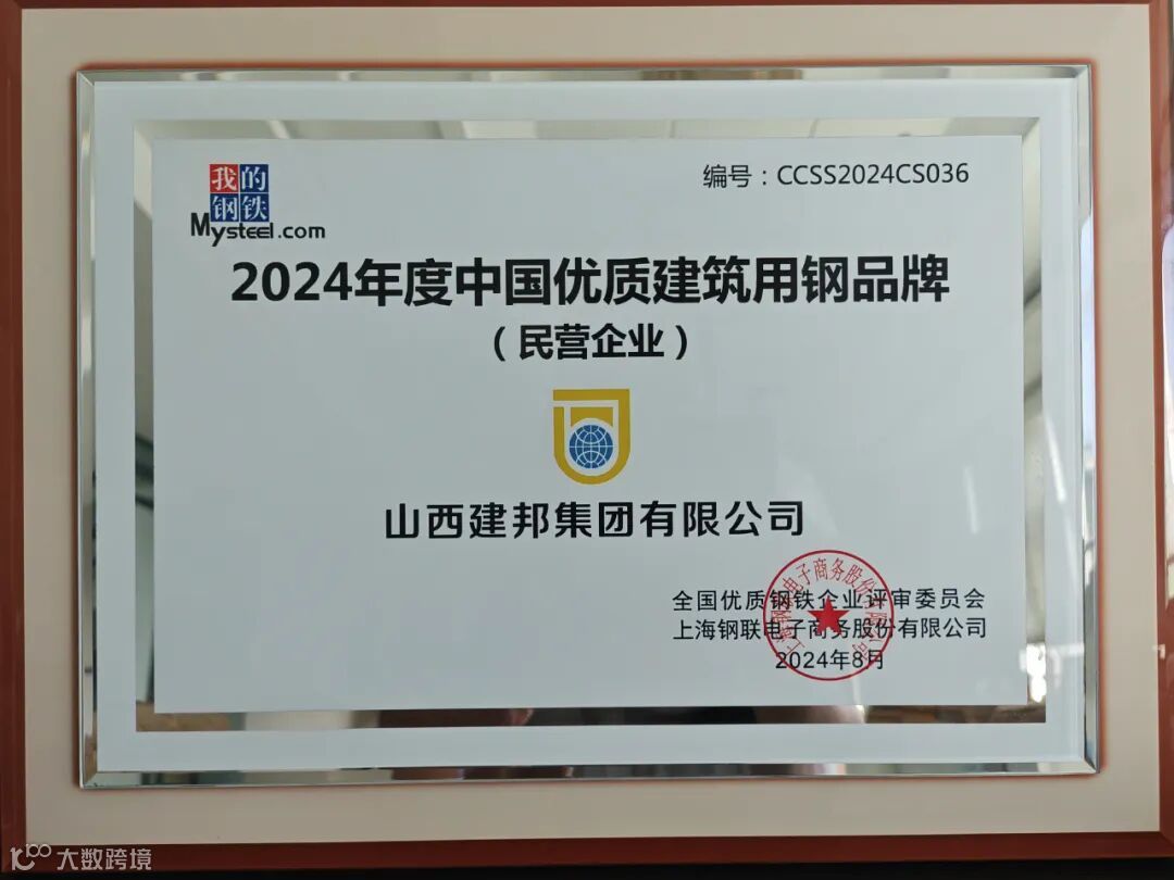 山西建邦集团荣获“2024年度中国优质建筑用钢品牌”