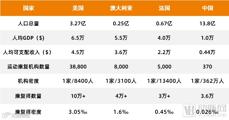 在人均需求比例上,根据公开资料显示,国内目前具有康复治疗师有技术资格的约3.6万人,康复师密度仅为0.026‰,与国外相距甚远,因此,人才的匮乏将是限制我国运动康复发展的一大重要原因。