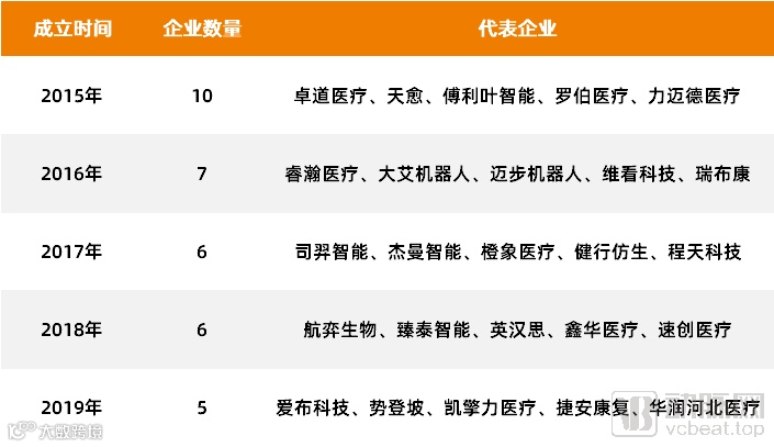 在企业数量上,根据动脉橙数据库显示,近五年来共新增34家医疗康复器械生产商,其中专注康复机器人领域的企业多达17家。作为高端康复医疗技术,康复机器人是机器人技术与医疗技术深度融合的产物,可以替代康复治疗医师的机械重复操作,将治疗师从繁重的、重复的训练工作中解脱出来,使得专业人员可以更加专注于治疗方案的改进,同时也为远程康复医疗及集中化康复医疗提供了可能。