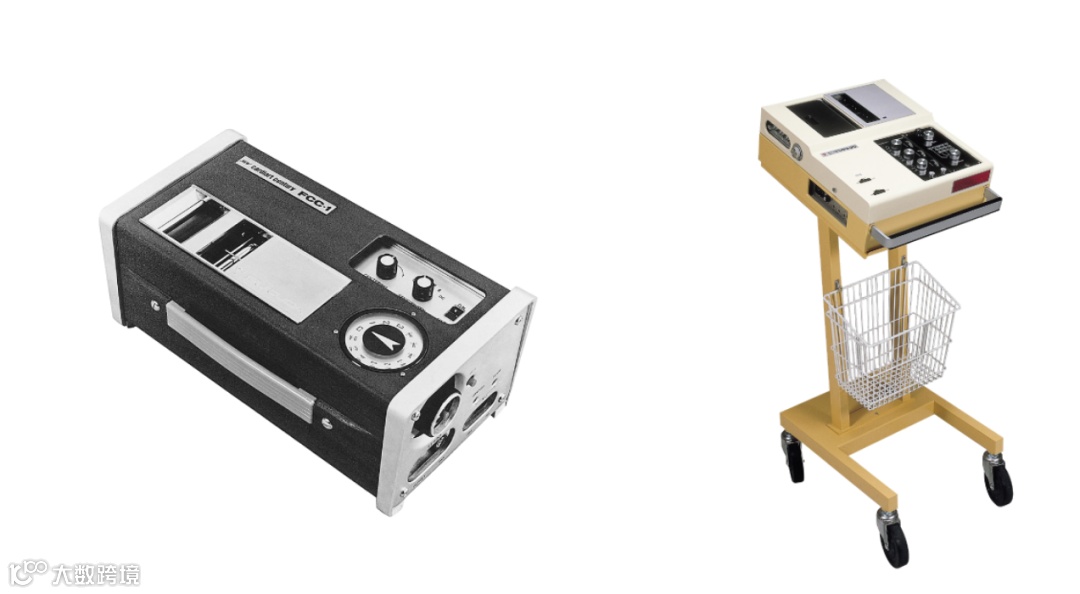 (图:1968年生产的全晶体管心电图仪FCC-1(左)、DU-3S(右))