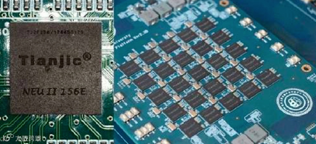 天机芯片单片(左)和5x5阵列扩展板(右)