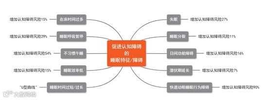 此外,郁金泰教授团队还绘制了10种可能促进认知障碍发生的睡眠特征/障碍图谱。这10种睡眠特征对认知障碍风险的影响各有差异:睡眠时长与认知功能障碍呈“U型”关系,其余各种睡眠特征/障碍使认知功能障碍发病风险增加的比率分别为失眠增加27%、睡眠分裂增加11%、日间功能障碍增加16%、潜伏期延长增加7%、快速动眼睡眠行为障碍增加90%、在床时间过多增加15%、睡眠呼吸暂停增加29%、不习惯午睡增加54%、睡眠效率低增加15%。