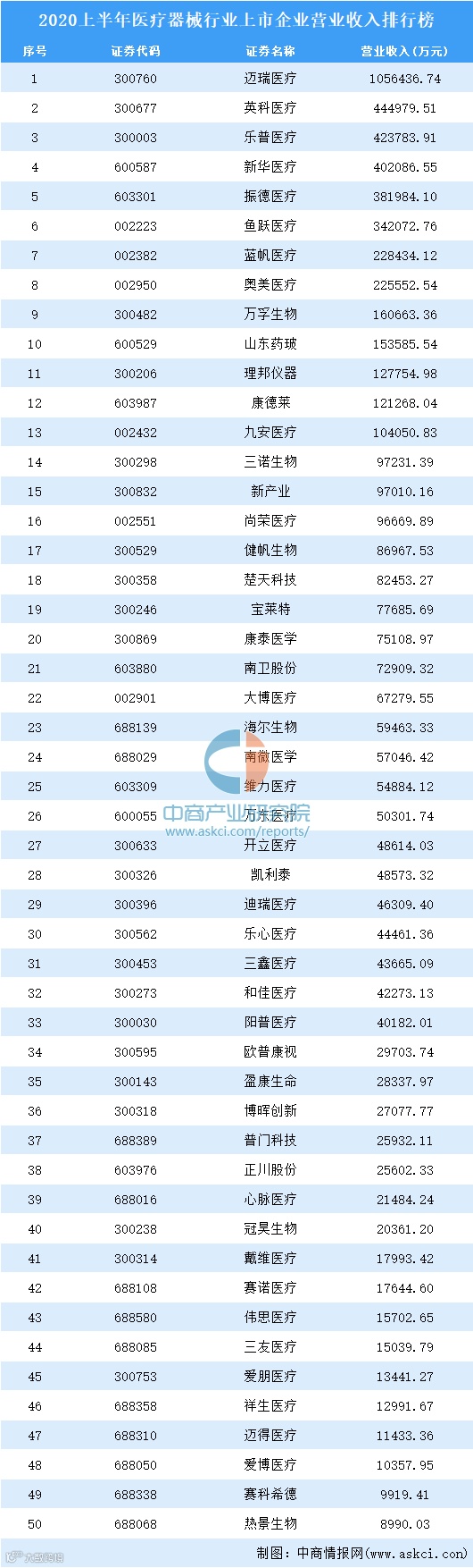 而国内哪些械企在这场疫情中崛起?或许下面这份2020上半年医疗器械行业上市企业营业收入排行榜能够给我们答案。