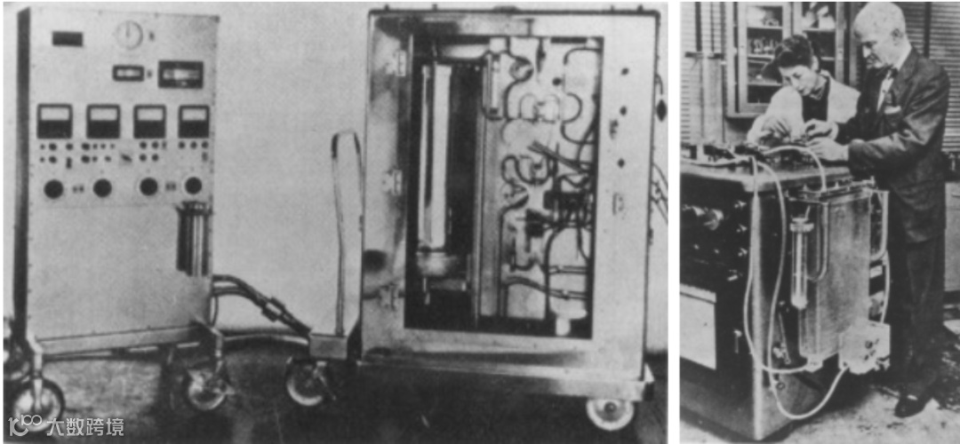 左:第一版人工心肺机(IBM I);右:第二版人工心肺机(IBM II)
