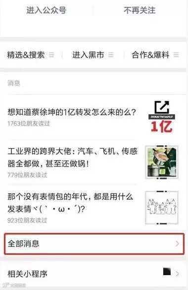 原本在公众号历史消息中,全部消息是折叠式的 ↓ ↓ ↓