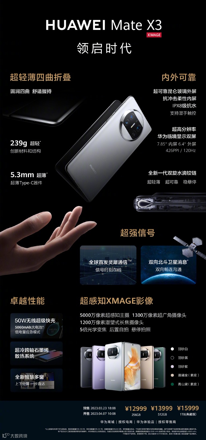 #华为MateX3#全球首发灵犀通信,带来卓越信号体验,天线、网络与算法三重技术升级,信号无忧,更支持双向北斗卫星消息,无地面网络信号也能发送和接收信息,与世界安心畅连。