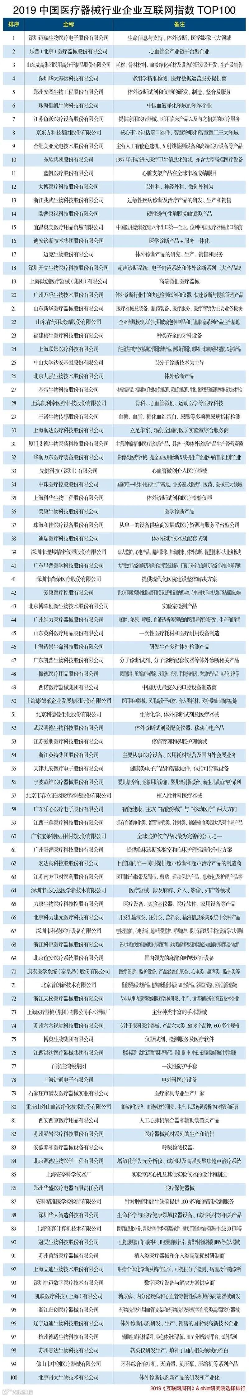 近日《互联网周刊》评选出了2019中国医疗器械行业企业互联网指数TOP 100强,迈瑞医疗不出意外又是第一。