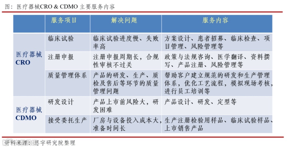 4、医疗器械CRO & CDMO服务的内容