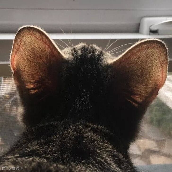 太阳照在小猫的耳朵上,显现出静脉