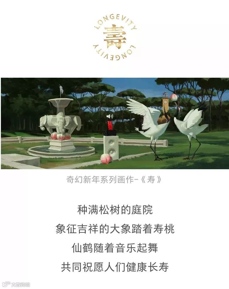 这一次,我们从众多对新年的美好期待中精心选出福、运、爱、发、乐、寿、美、安、慧9个最美好的主题,邀请到90后跨领域艺术家Ignasi Monreal和我们一起,理解中国文化的丰富内涵,将东西方的美好祝福进行了融合与再创作,为我们带来了一个包含双重祝福的奇幻新年。