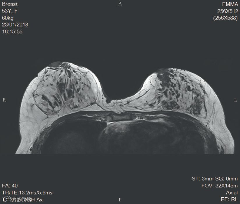 美时医疗与世界领先的乳腺癌症中心共同合作研发的磁共振乳腺专用诊断系统 EMMA,能做到快速乳腺磁共振筛查 (abbreviated Breast MRI scan)。无论是对已发现的乳腺肿瘤随访,或是对已知的致密性乳腺检查,还是确定乳腺肿瘤边缘,EMMA 乳腺专用磁共振成像系统都有诊断上的优势。该技术大大改进了乳腺检查的工作流程,能够实现快速和低成本的乳腺扫描,有助于开展磁共振乳腺筛查,从而取代有辐射危害和误诊率高的乳腺X线检查。同时,该系统也能提供高质量的乳腺磁共振图像供进一步诊断。