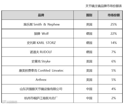 中国市场关节镜主镜品牌市场份额表