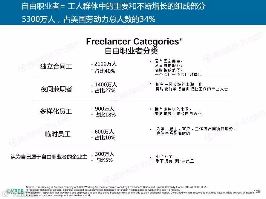 自由职业者成为工人群体中的重要和不断增长的组成部分,全美自由职业者有5300万人,占美国劳动力总人数的34%。