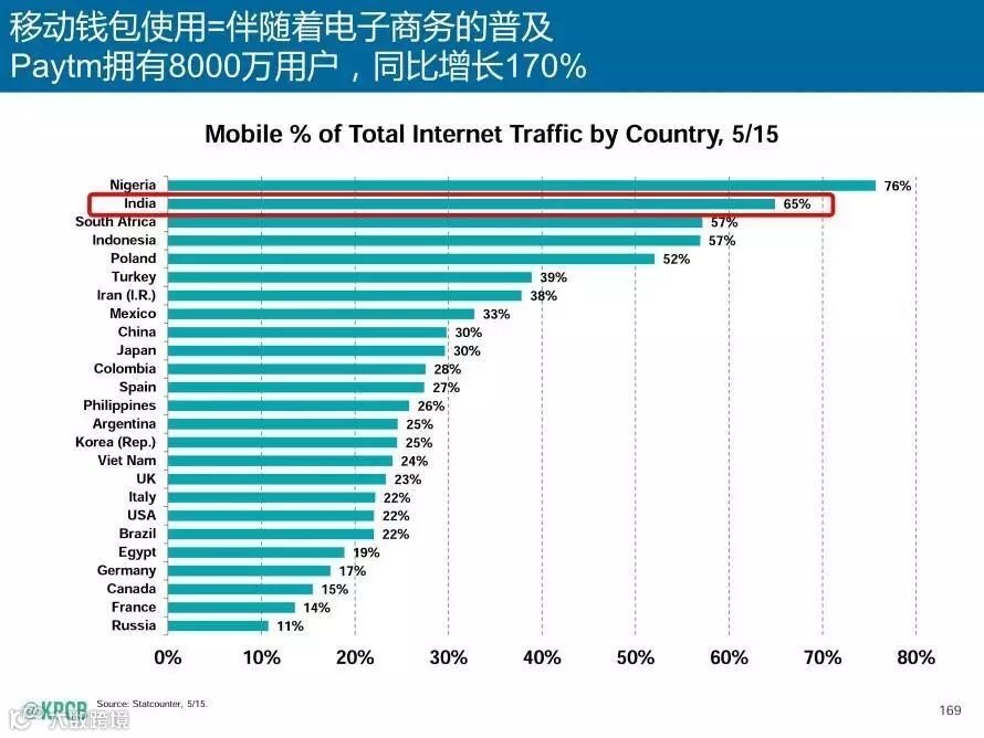 移动端贡献了65%的印度互联网流量,较全球大多数国家更加“移动化”