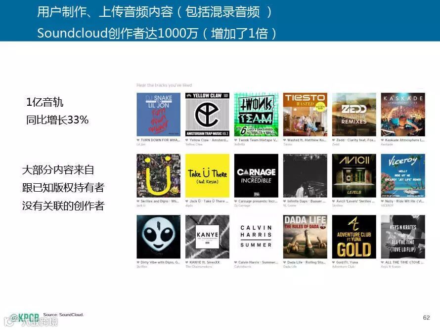用户制作、上传音频内容(包括混录音频 ),如Soundcloud创作者达1000万(增加了1倍)。