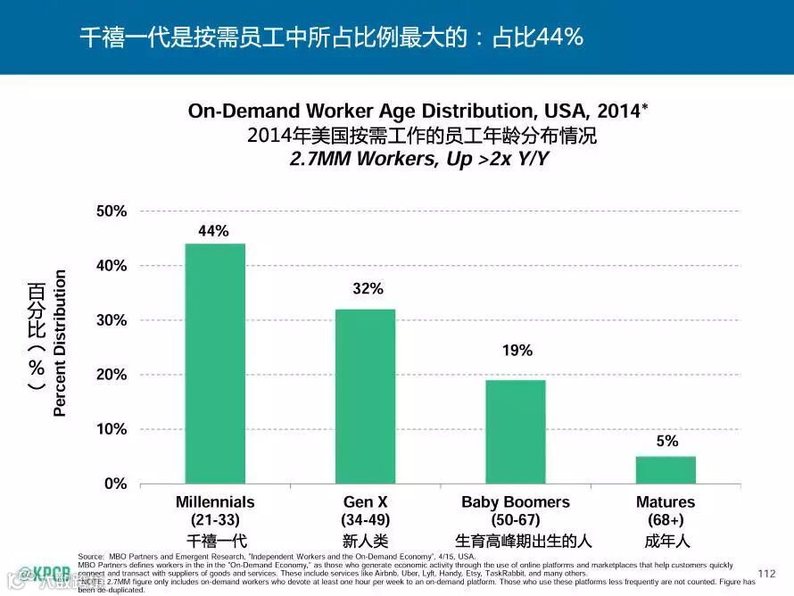 千禧一代是按需员工中所占比例最大的,占比44%。