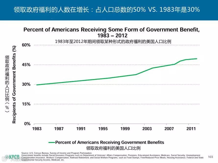 领取政府福利的人数在增长,1983年是30%,2012年占人口总数的50%