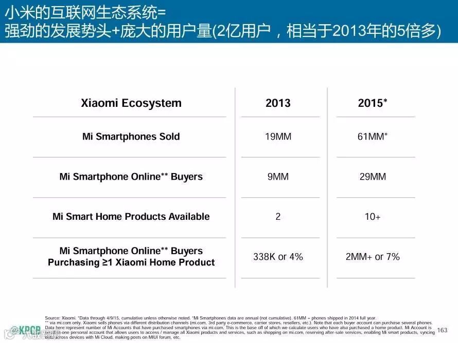 小米的互联网生态系统是,强劲的发展势头+庞大的用户量(2亿用户,相当于2013年的5倍多)