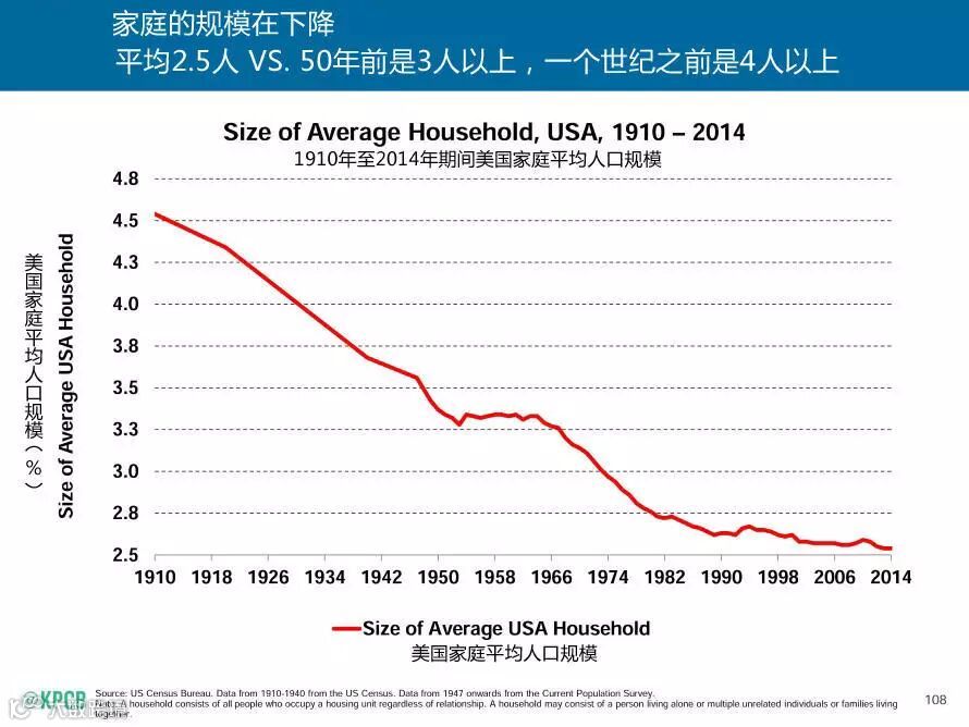 家庭的规模在下降,50年前的平均家庭规模是3人以上,现在则是2.5人。