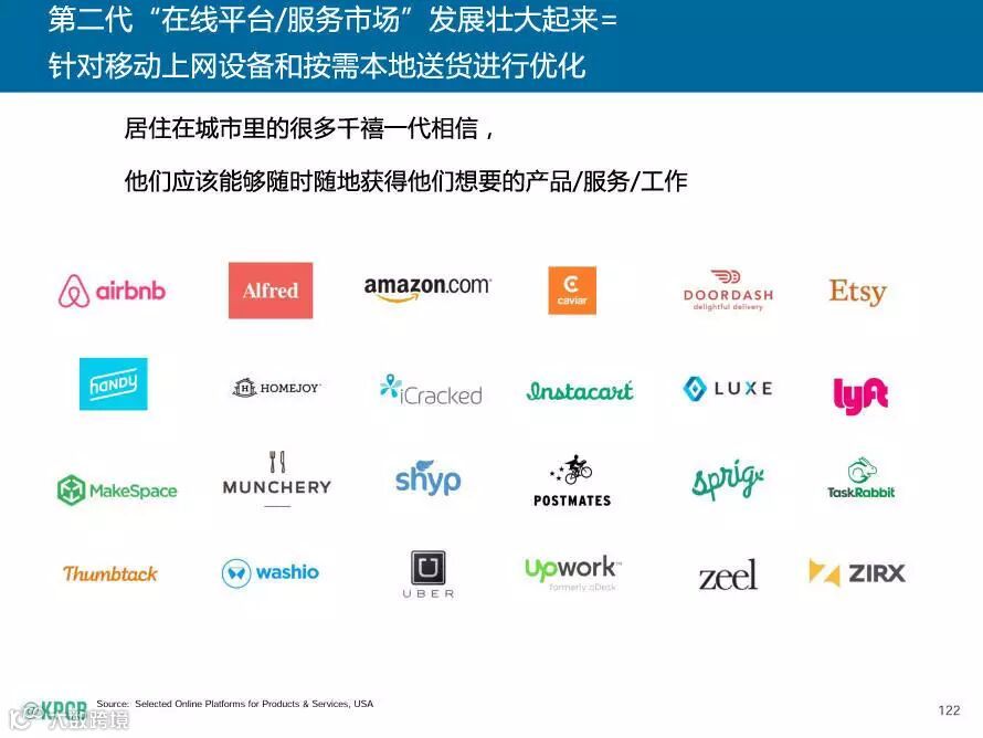 第二代“在线平台/服务市场”发展壮大起来,针对移动上网设备和按需本地送货进行优化。