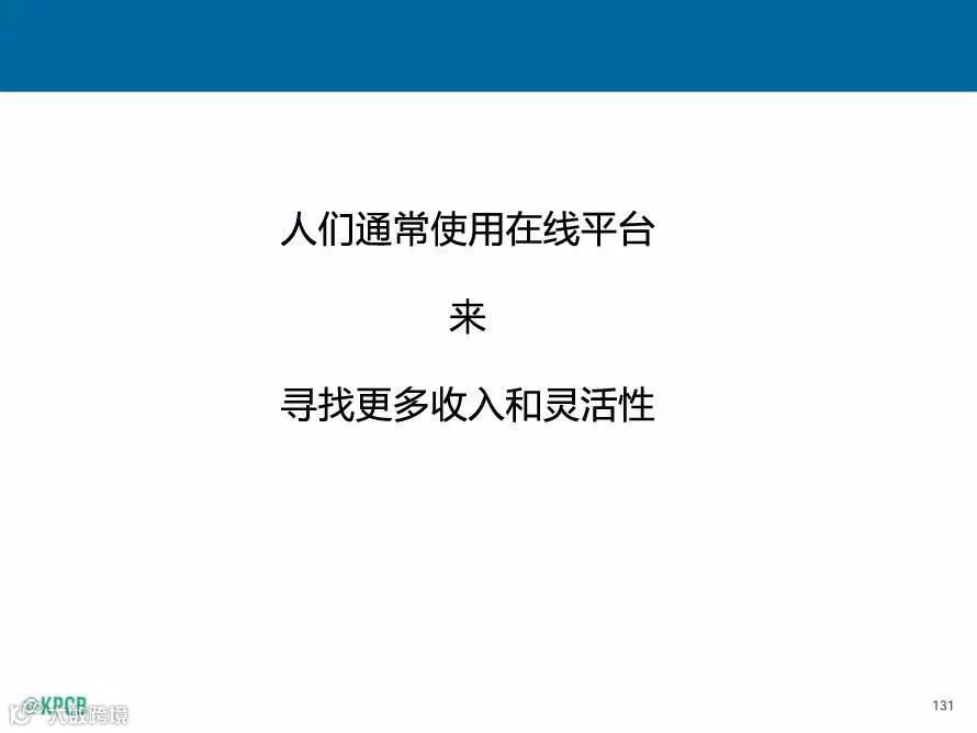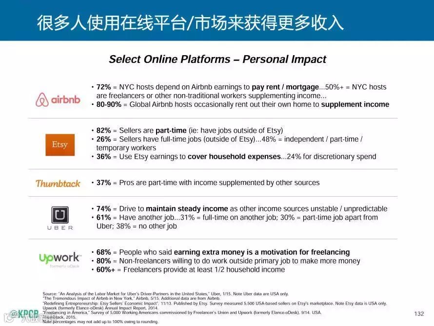 在线平台/市场发展迅速,为个人创造了新的就业机会也提出了新的挑战。这个趋势将继续上升,就像第一代互联网公司引发的趋势和造成的影响一样,可能越来越快也越来越宽。