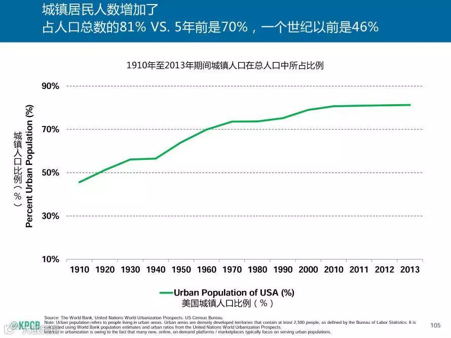 城镇居民人数增加了,一个世纪占人口总数的46%,一个世纪以前是46%,现在则是81%。