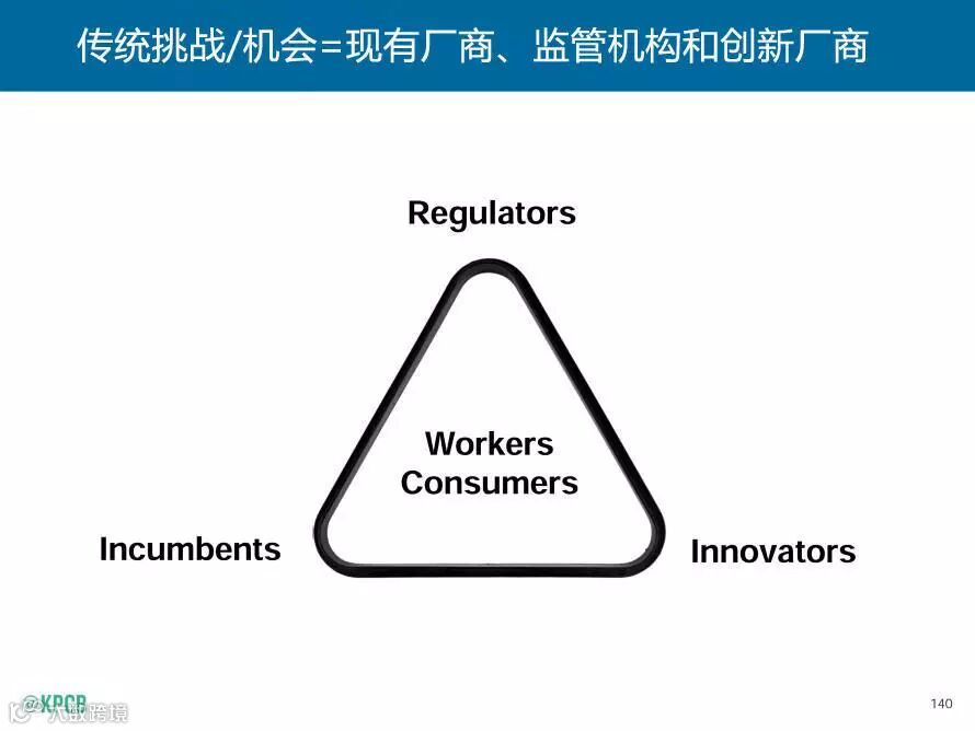 传统挑战/机会=现有厂商、监管机构和创新厂商