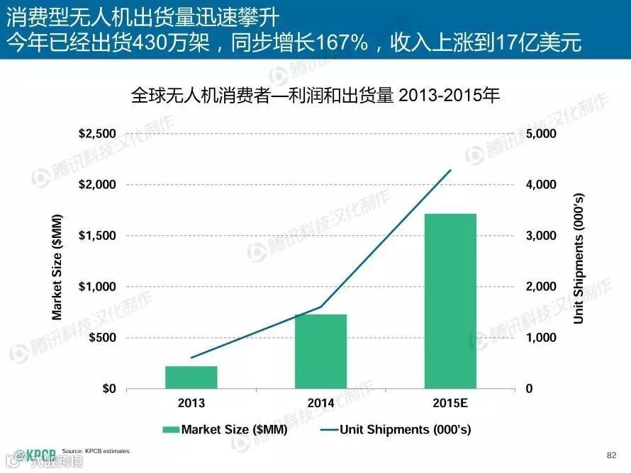消费型无人机的使用,美国占35%,欧洲占30%,中国占15%,平均价格为700美元。
