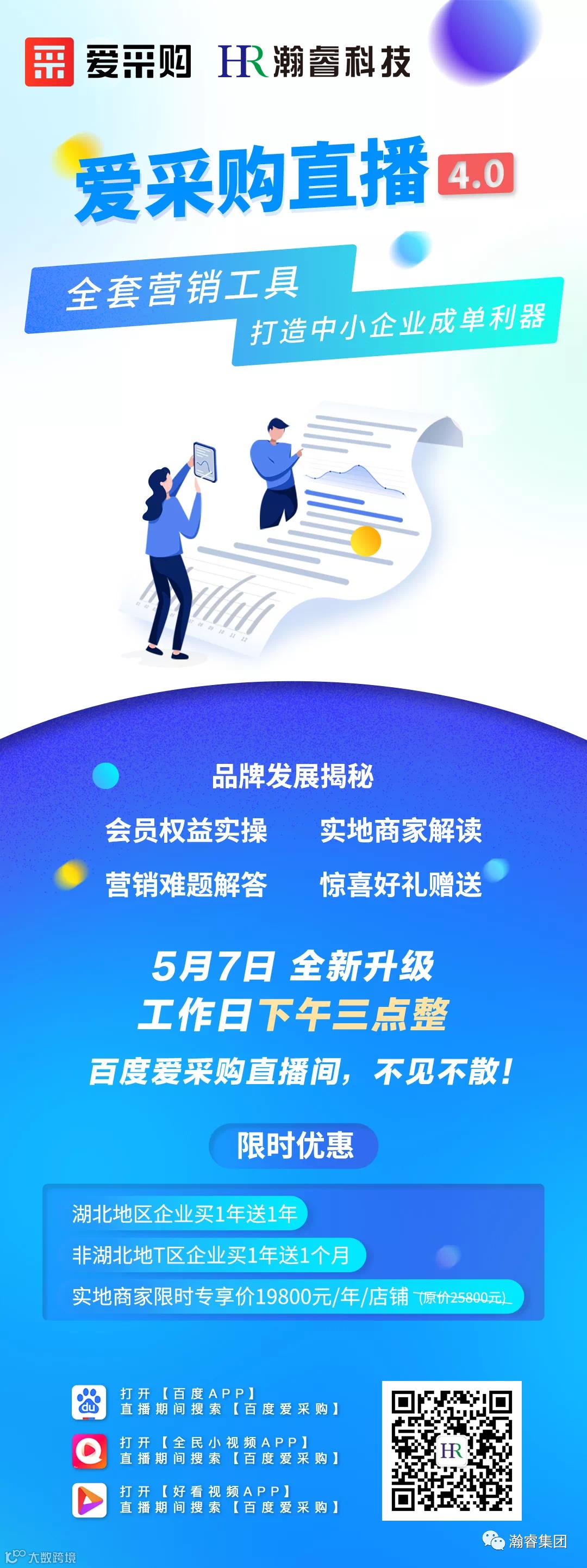 感谢大家的支持与厚爱,在即将到来的直播4.0时代,我们将延续对营销内容的专业度,结合当下市场环境,重磅发布爱采购行业风向标,助力中小企业看清市场趋势。除此之外,我们在直播当中还将会带来爱采购的品牌发展故事揭秘,会员权益实操演示,实地商家在线解读,营销难题解答以及超多的好礼赠送,力求从多维度给予到中小企业更多的思考与探索,干货满满,惊喜多多。