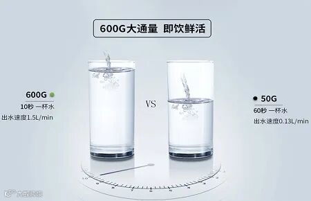 600G: 制水速度37.85L/h,即:1.58L/min;
