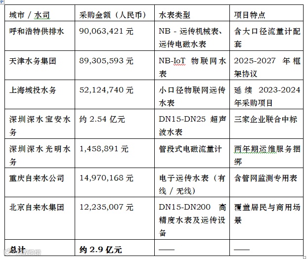 2025年6月至11月,全国核心城市水务系统智能水表采购进入密集期。