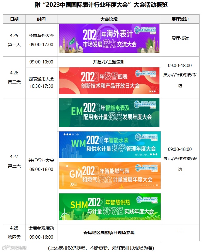 “METERING China2023中国国际表计行业年度大会(第十七届)”将于2023年4月25-28日在美丽的海滨城市青岛举办,主题为“拥抱表计数智化,开启双碳新计量”。