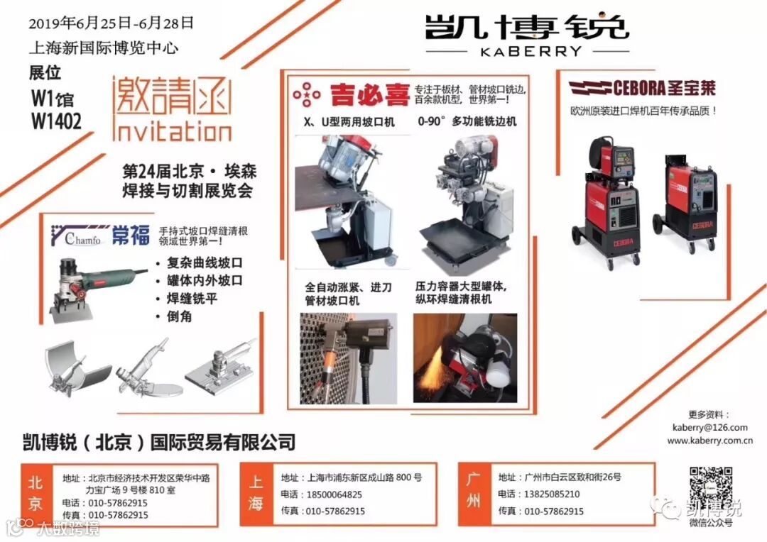 凯博锐诚挚邀请您参加2019年第24届北京·埃森焊接与切割展览会,展位号W1号馆W1402