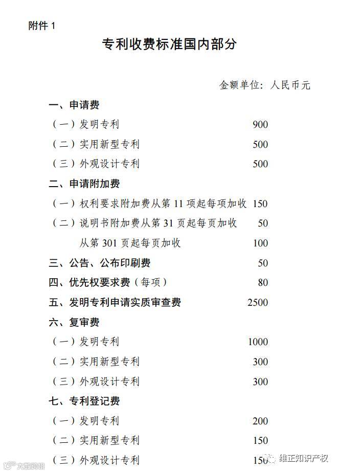 国家知识产权局收取的专利收费标准(国内部分)按《专利收费标准国内部分》(附件1)规定执行。