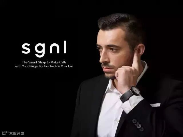 Sgnl通过蓝牙接收手机的语音信号,腕带内部的体传导单元将对方声音转化为特定频率的振动信号,并传递到手指,将手指紧贴耳边,就能清晰地听到声音。