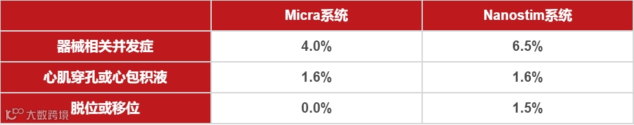 Micra无导线起搏器植入成功率99.2%(入组725例患者,成功植入719例),有效性终点96%,安全性终点98.3%。不良事件发生率少于传统的永久性起搏器(4.0% vs. 7.4%;P=0.001)。住院事件(2.3% vs. 3.9%)和需进行植入后调整术的发生率(0.4% vs. 3.5%),较传统起搏器明显减少。