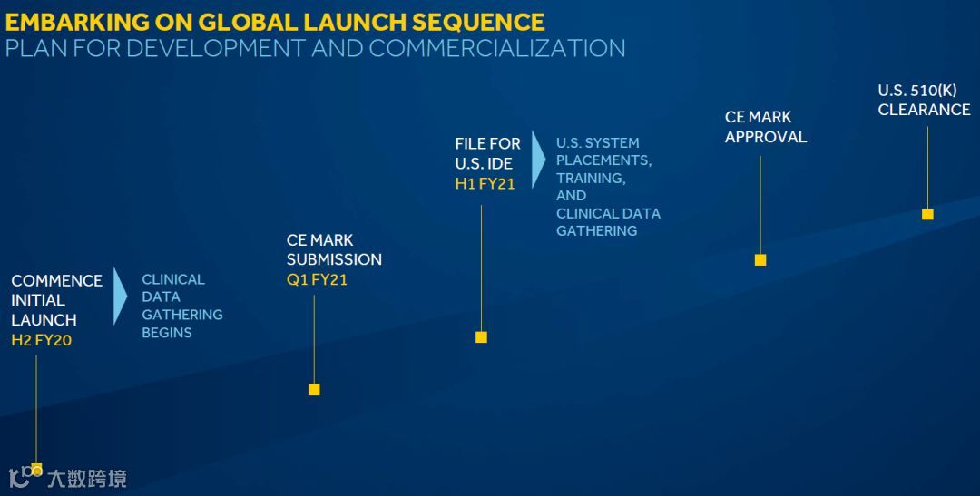 据了解,美敦力将在2021财年第一季度提交CE认证,并申请豁免美国研究用器械,以开始在美国的医院中放置系统,培训外科医生并收集临床数据。如果一切按计划进行,那么该系统将在未来2年内在欧洲和美国上市。