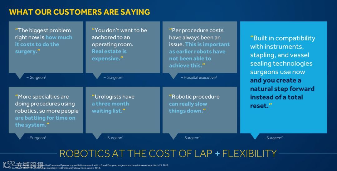 美敦力也表示,自己的手术机器人除了本身就是高价值的产品之外,还能完美的结合自家的耗材余内植入物;结合视觉和导航技术,能积累海量的数据,为美敦力的医疗器械研发注入新的动力。此外,美敦力多年来沉淀的患者支持体系也能为手术机器人的应用体验加分。