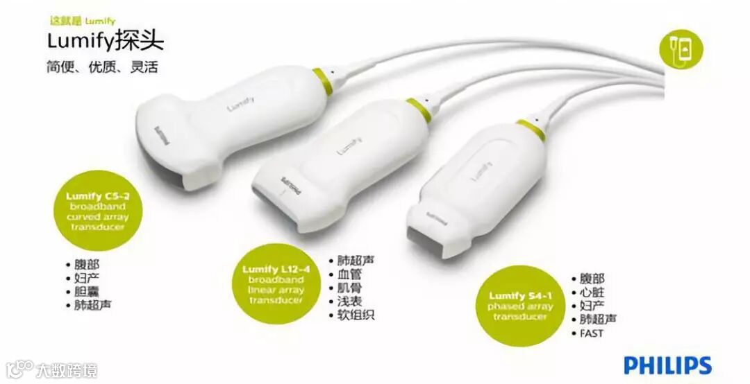 Lumify便携超声在2019年1月获得NMPM的批准上市。它集成了飞利浦图像优化技术、超声探头等技术,小到可以装进口袋。它的探头共有三种型号——凸阵、线阵、相控阵。