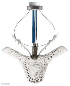 Barricaid®AnularClosure Device(ACD),也称为“Barricaid”,是插入下背部脊椎骨的植入物,用于防止另一个椎间盘突出。Barricaid是由钛制成,并附着在聚酯(聚对苯二甲酸乙二醇酯或通常称为PET)柔性编织聚合物织物组件上。在初始的椎间盘突出后,Barricaid用于在下背部有限的椎间盘切除术后闭合患者脊椎骨的孔(L4-S1)。
