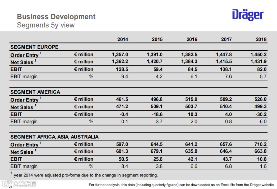 从2014年至2018年,德尔格在欧洲市场的收入最高,占整个公司50%以上的收益。